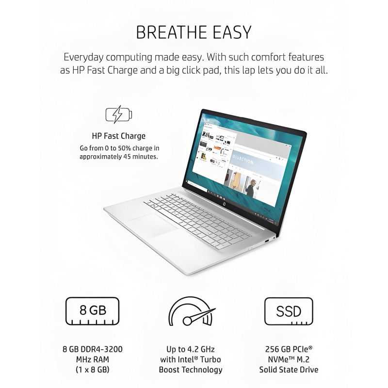 HP 17 笔记本电脑精心设计,将可持续性与性能和舒适性相结合。 采用升降铰链设计和放大点击垫,计算从未如此满意或舒适。 它不仅是优化您的方便使用的键盘,还是显示屏;防眩光屏幕让您即使在阳光明媚的日子里也能享受您最喜爱的电影和游戏 (1) 。 第 11 代 Intel® Core™ i5-1135G7 处理器和英特尔® Iris® Xe 显卡 (2) (3) 的完美组合,享受可靠性能和令人难以置信的图形。 获得您所需的全部存储空间,以及您渴望的高带宽,通过笔记本电脑的 256 GB 固态硬盘存储和 8 GB RAM (4)(5)。 除了硬件外,这款 HP 笔记本电脑还具备更多功能,将您的工作和游戏提升到新的高度的舒适度。 使用 ( 6 ) ,无需再担心电池寿命,长达 8 小时播放时间,加上 HP 快充技术,在您需要时可快速充电(7 )。 有了这款 HP 惠普1 年有限硬件保修(8),您可以轻松与您所熟悉并喜爱的 Windows 10 操作系统一起工作,享受更大的安心。 有了 Wi-Fi 6 (2x2) 和 Bluetooth® 5.0 组合(9)(10)(11),您的无线连接比Wi-Fi 5快 3 倍。 保持工作效率,即使您在任何地方工作。 这款 Windows 笔记本电脑具备您专业视频通话所需的一切,从 HP TrueVision 高清摄像头到定制调谐双扬声器设置 (12) 。 使用环保笔记本电脑,迈向可持续的未来。 环保材料,如海洋装订的塑料用于外壳、表圈和扬声器外壳(13)的构造。 包装中使用的外箱和纤维靠垫是 100% 可持续采购和可回收(14)。 HP 17.3 笔记本电脑还获得 ENERGY STAR® 认证和 EPEAT® 银注册(15)(16)。 Windows 11 (17) Windows 11 即将推出! 全新 Windows 体验,让您更贴近人们和喜爱的东西。 立即偷看吧! (1) 需要高清 Plus (HD+) 内容才能查看高清和图像。 (2) 多核旨在提高某些软件产品的性能。 并非所有客户或软件应用都一定会从此技术的使用中受益。 性能和时钟频率会因应用程序工作负载以及您的硬件和软件配置而有所不同。 Intel 的编号、品牌和/或命名不是性能更高的测量。 Intel、Pentium、Intel Core、Celeron、Iris Xe、Intel 徽标和 Intel Inside 标志是 Intel Corporation 在美国及其他国家的商标。 (3) 共享视频存储器 (UMA) 使用系统内存的一部分来提高视频性能。 用于视频性能的系统内存不适用于其他程序。 (4) 实际格式化容量较少。 预留了一部分内部存储空间用于预加载的内容。 (5) 基于 HP 内部测试,使用 CrystalDiskMark 基准软件。 与传统的 5,400 rpm 硬盘相比,性能会逐级提高(只读)。 (6) Windows 10 MobileMark 18 电池续航时间可能因产品型号、配置、加载的应用程序、功能、使用、无线功能和电源管理设置等因素而有所不同。 电池的最大容量会随着时间和使用情况自然减少。 有关详细信息,请访问 bapco.com/products/mobilemark-2018/。 (7) 在系统关闭后 45 分钟内为您的电池充电 50% (使用"关闭"命令)。 建议与笔记本电脑提供的 HP 适配器一起使用,不建议使用较小的电池充电器。 充电达到 50% 容量后,充电速度将恢复到正常速度。 由于系统公差,充电时间可能不同 +/-10%。 (8) 并非所有版本或版本的 Windows 都提供所有功能。 系统可能需要升级和/或单独购买硬件、驱动程序、软件或 BIOS 更新,以充分利用 Windows 功能。 Windows 10 会自动更新,始终启用。 ISP 可能会收取费用,并且会随着时间推移产生额外要求。 参见 microsoft.com (9) 基于 Wi-Fi 5 80MHz 和 Wi-Fi 6 160MHz 的两个设备之间传输文件的最低要求。 需要一个支持 802.11ax(Wi-Fi 6)的无线路由器。 仅适用于支持 802.11ax 的国家。 (10) 需要无线接入点和互联网服务,单独出售。 公共无线接入点数量有限。 需要一个支持 80MHz 通道的无线路由器。 Wi-Fi 6(802.11ax)向后兼容之前的 802.11 规格。 Wi-Fi 6 的规格是草稿,不是最终的。 如果最终规格与草稿规格不同,它可能会影响笔记本与其他 Wi-Fi 6 设备通信的能力。 仅适用于支持 802.11ax 的国家。 (11) Bluetooth® 是其所有者所有并由 Hewlett-Packard 公司使用。 (12) 功能可能需要软件或其他第三方应用程序来提供上述功能。 需要网络服务,但不附送。 (13) 每个组件中含有海洋生物的塑料百分比因产品而异。 (14) 100% 外盒/瓦楞纸包装,由可持续来源的认证和再生纤维制成。 纤维靠垫由 100% 再生木纤维和有机材料制成。 不包括塑料袋和塑料泡沫板。 (15) ENERGY STAR 和 ENERGY STAR 标志是美国环保局所有注册商标。 (16) 基于美国 EPEAT® 注册,符合 IEEE 1680.1-2018 EPEAT®。 EPEAT® 状态因国家而异。 请访问 www.epeat.net 了解更多信息。 (17) 升级推广计划即将完成,计划于 2021 年晚些时候开始,并继续至 2022 年。 特定时间可能因设备而异。 某些功能需要特定硬件,请参阅 http://www.Microsoft.com/windows/windows-11-specifications。