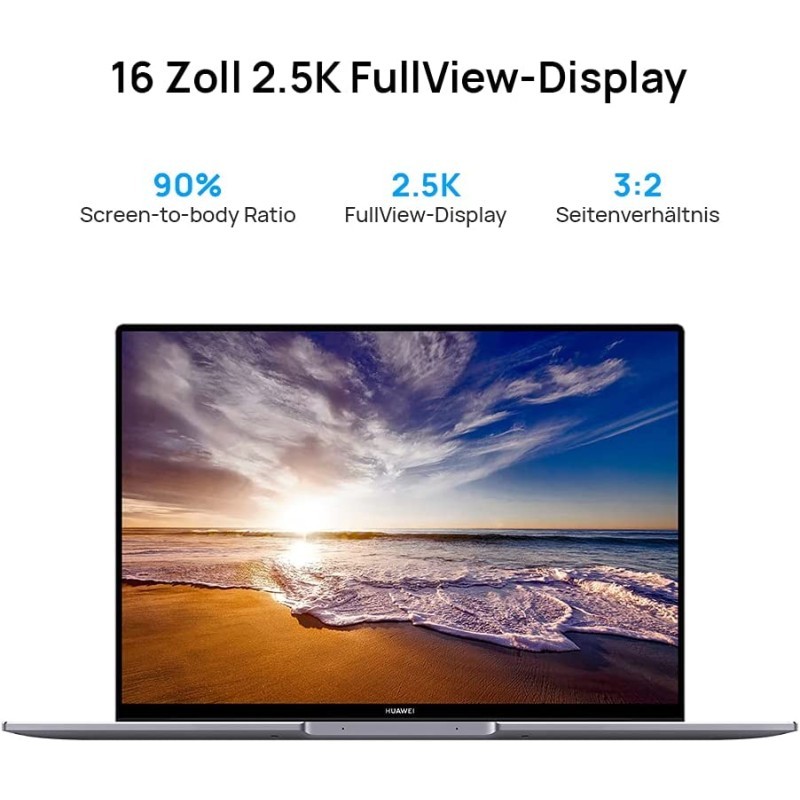 HUAWEI 华为 MateBook 16 是一款带有16英寸2.5K 全视图显示屏的笔记本电脑。 HUAWEI 华为 MateBook 16 是世界上第一款带有 TÜV Rheinland 认证的 Color Accuracy 笔记本电脑。 HUAWEI 华为 MateBook 16 屏幕让您看到颜色。 体验第一目了然和触摸的质量 , 产生光滑哑光表面。 使用全新的 AMD Ryzen 7 5800H 7nm 芯片组将加工提升到专业水平。 定制的 Dual Shark F风扇系统和两个前置扬声器确保出色的用户体验。 HUAWEI 华为 MateBook 16 配备了最新更新版本的 HUAWEI Share ,您可以将智能手机和笔记本电脑变成一个互动超级设备并同步平板电脑。 使用 135W 充电器和大型 84 Wh 电池,您可以获得目标所需的电源。 供货范围:1 x 华为 MateBook 16,1 x HUAWEI 华为 USB Type-C 电源135 W,1 x 快速入门指南(不一定支持中文),1 x 保修卡,30 个商店制造商保修